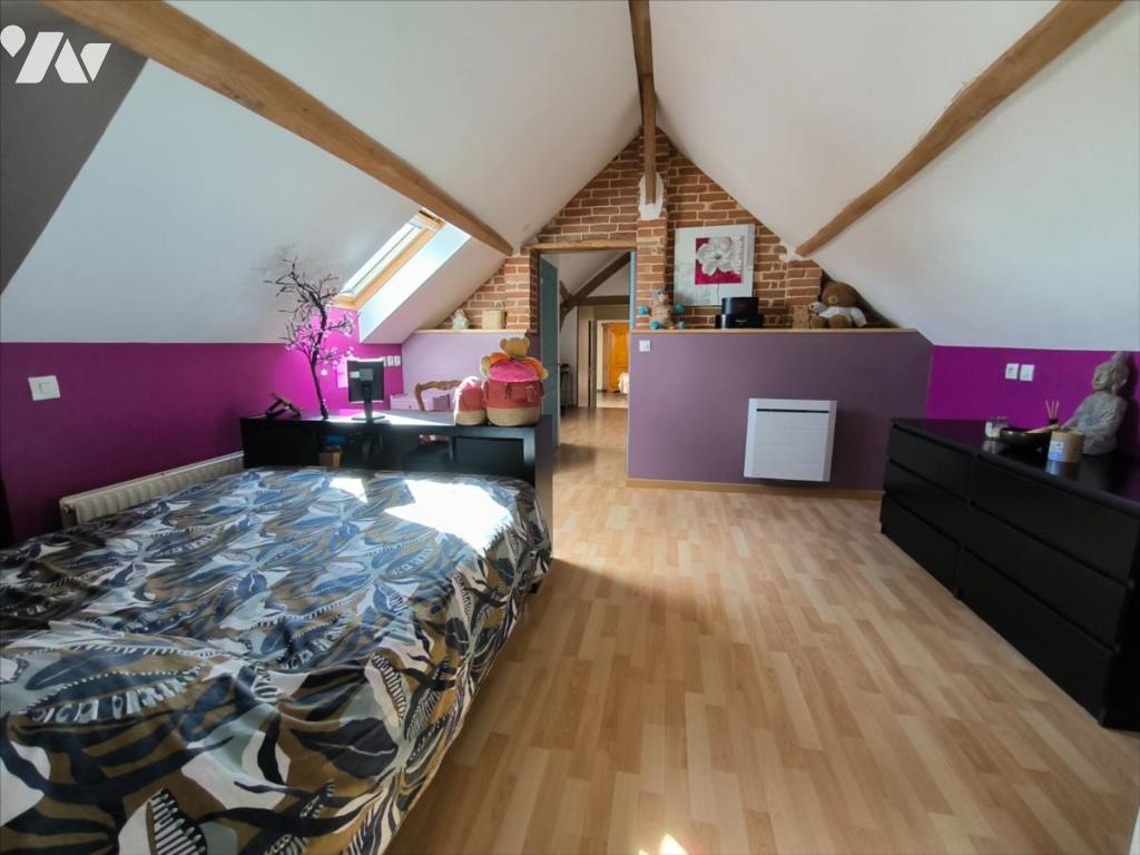Cette maison se situe sur la commune du Val d'Hazey, village entre Louviers et Gaillon. Elle se compose d'une cuisine aménagée, un grand séjour lumineux avec cheminée, une arrière cuisine et une chambre avec salle de douche. A l'étage, un palier, un bureau, trois chambres et une salle de douche. Elle dispose aussi d'une dépendance avec deux pièces et une mezzanine. le tout sur un terrain clos de 1244 m² avec un atelier d'environ 100 m².